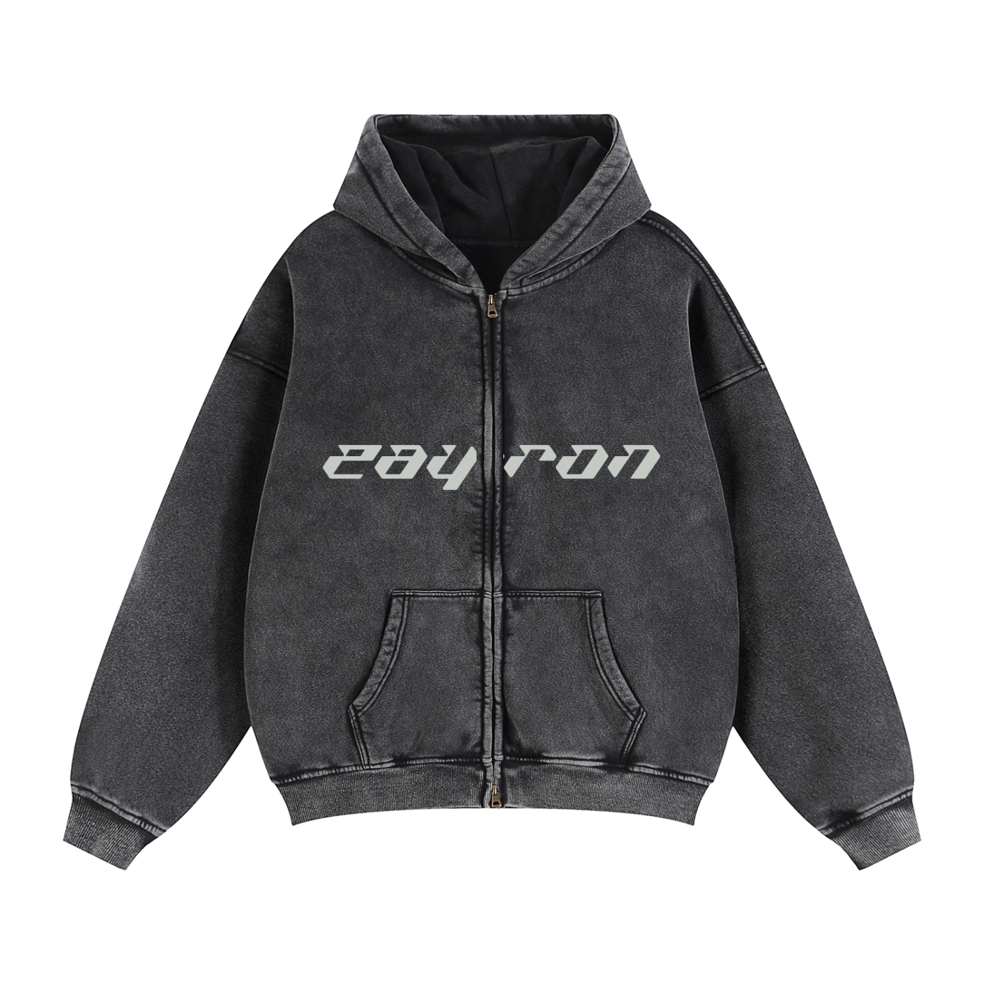Contrast-Stitched Boxy Fleece Zip Hoodie